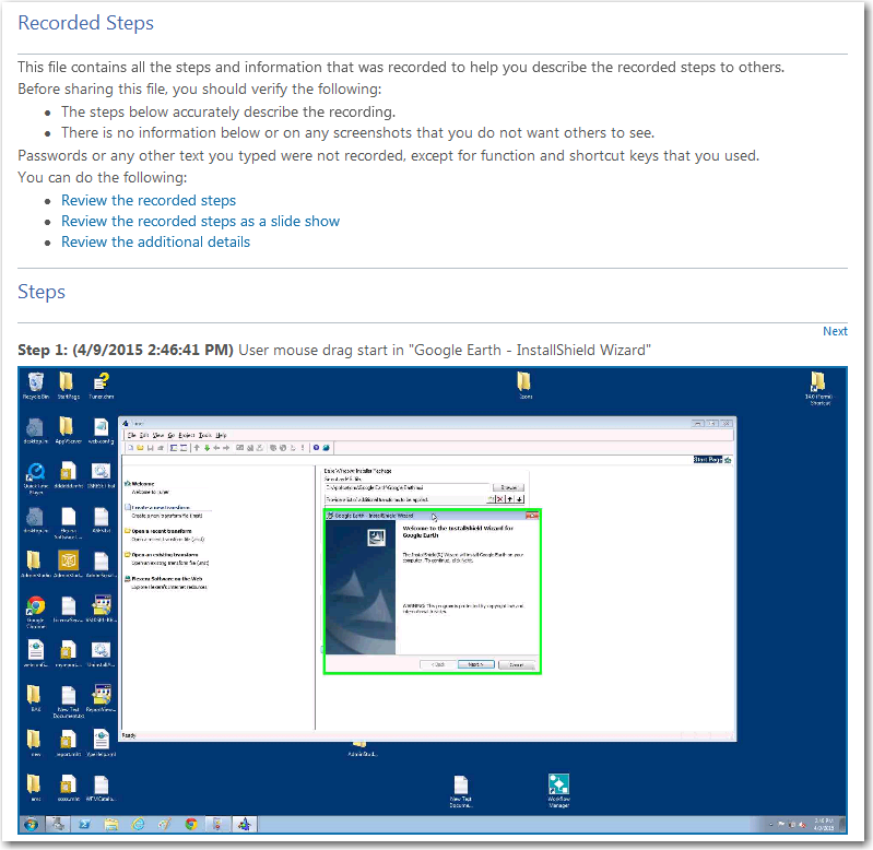 If you want to view all of the screens as a slide show instead of scrolling through them, click Review the recorded steps as a slide show.