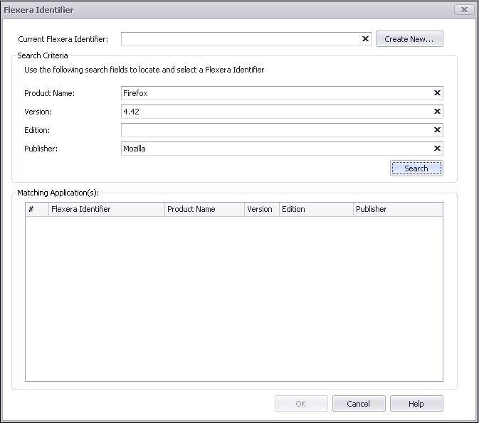 2. Use the search fields to locate and select a Flexera Identifier, as described in Performing a Manual Search for a Flexera Identifier.